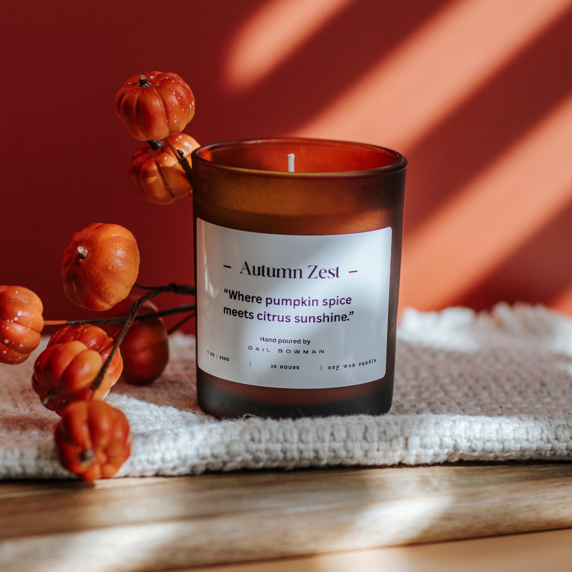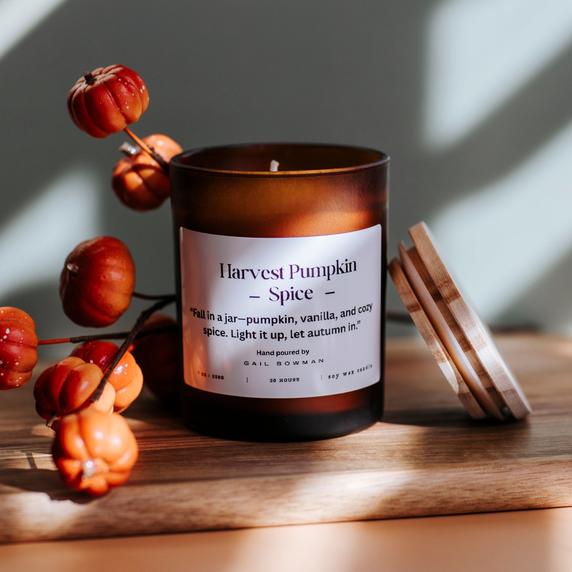 Description: Fall in a jar-pumpkin, vanilla, and cozy spice. Light it up, let autumn in.