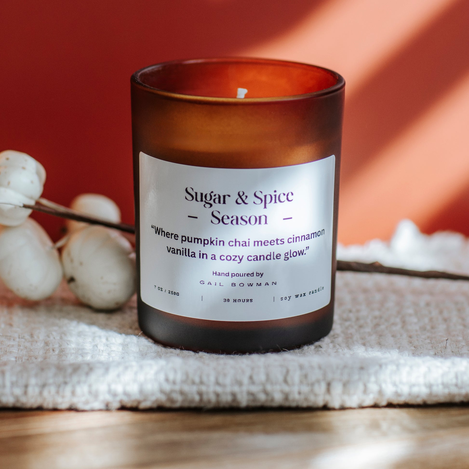Description: Where pumpkin chai meets cinnamon vanilla in a cozy candle glow.